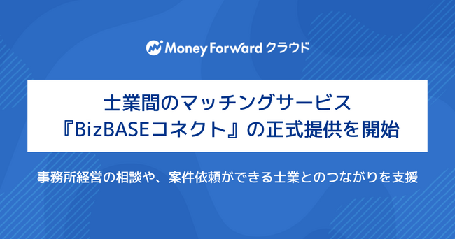 株式会社マネーフォワードは、公認メンバーの士業に向けて、士業間のマッチングサービス『BizBASEコネクト』の正式提供を開始しました。これにより、事務所経営における悩みや、リソース不足などの課題を抱える士業が、相談先や案件の依頼先となる士業を簡単に探すことができ、専門家を探す手間や工数を削減します。