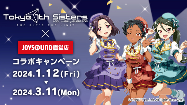 株式会社DONUTS(東京都渋谷区、代表取締役:西村啓成)がApp Store及びGoogle Playにて提供中のスマートフォン向けゲームアプリ『Tokyo 7th Sisters THE SKY’S THE LIMIT』(略称:ナナシス)は、2024年1月12日(金)から「Tokyo 7th Sisters×JOYSOUND直営店コラボキャンペーン」を開始いたします。