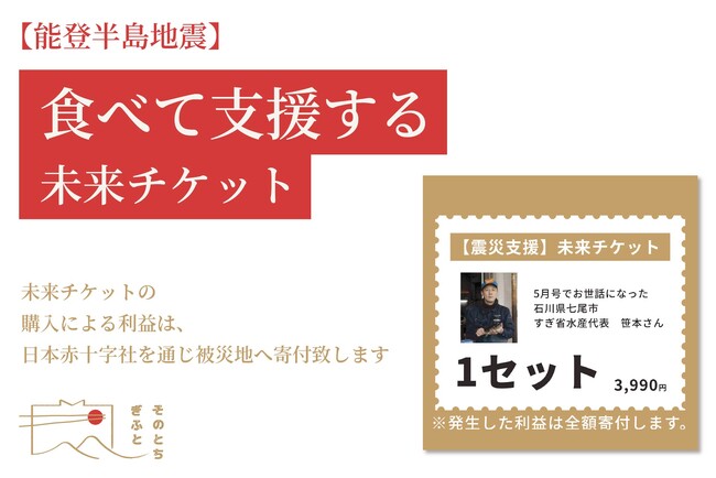 株式会社 picks design(本社:愛知県名古屋市、代表取締役:松浦克彦)が運営する、地域の食べ物と地域の観光ブックを届ける定期便サービス「そのとちぎふと」は、令和6年能登半島地震により被災された生産者に向けた支援として【震災支援】未来チケットを販売いたしました。未来チケットの購入による利益は、日本赤十字社を通じ被災地の支援に当てさせていただきます。