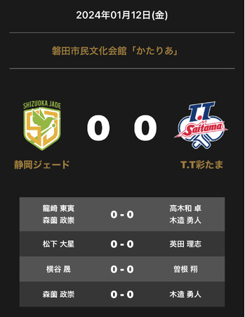 ノジマTリーグ 2023-2024シーズン 公式戦 1月12日開催 静岡ジェード vs T.T彩たま 対戦オーダー発表
