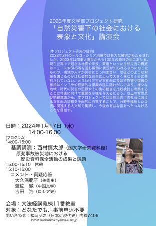 【岡山大学】2023年度文学部プロジェクト研究 講演会「自然災害下の社会における表象と文化」〔1/17,水 岡山大学津島キャンパス〕