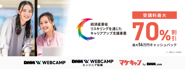 DMM WEBCAMP、マケキャンbyDMM.comの各種コースが経済産業省「リスキリングを通じたキャリアアップ支援事業」に採択