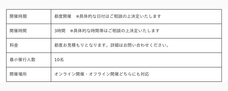 オフィスや指定の場所へ講師がお伺いして研修を行います。また、オンライン完結の開催も可能です。