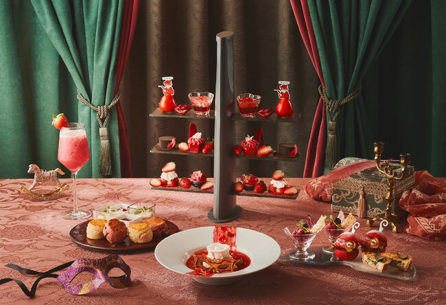 仮面舞踏会(マスカレード)をテーマにしたストロベリーアフタヌーンティーに 春の訪れを感じるウェルカムデセールとドリンクが登場