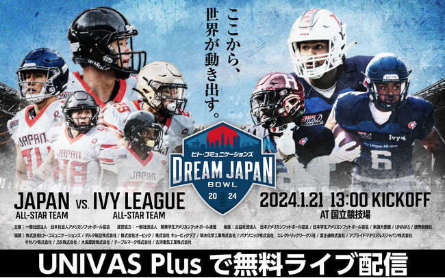 UNIVAS、アメリカンフットボールの全日本選抜と米国大学選抜 夢の対決!「DREAM JAPAN BOWL 2024」の無料ライブ配信決定!