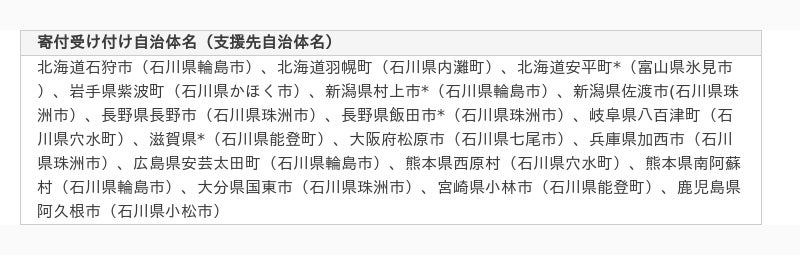 ■「令和6年1月能登半島地震 災害緊急支援寄付サイト」代理寄付受け付け掲載自治体