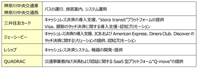 神奈川中央交通東株式会社(本社:神奈川県藤沢市、代表取締役社長:北村 聡)、神奈川中央交通西株式会社(本社:神奈川県平塚市、代表取締役社長:北村 聡)、三井住友カード株式会社(本社:東京都江東区、代表取締役社長:大西 幸彦)、株式会社ジェーシービー(本社:東京都港区、代表取締役兼執行役員社長:二重 孝好)、レシップ株式会社(本社:岐阜県本巣市、代表取締役社長:杉本 眞)、QUADRAC株式会社(本社:東京都港区、代表取締役社長:高田 昌幸)は、2024年3月1日、神奈川中央交通グループで運行する高速バスの対象路線で三井住友カードが提供する公共交通機関向けソリューション「stera(ステラ) transit(トランジット)」を活用したタッチ決済対応のカード(クレジット・デビット・プリペイド)や、同カードが設定されたスマートフォンなどによる乗車サービスを開始します。