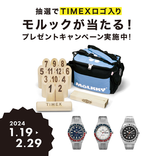米国の腕時計ブランド「TIMEX /タイメックス」は対象商品ご購入でTIMEXロゴ入りモルック(非売品)が当たる!抽選キャンペーンを1月19日(金)より開始いたします。