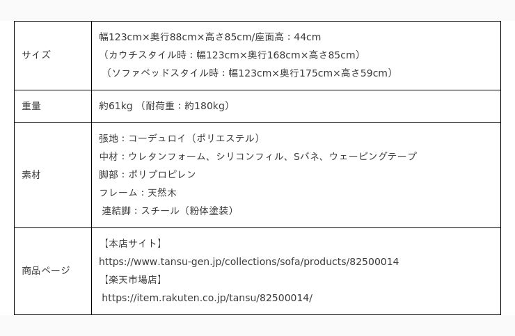 1.5P: https://www.tansu-gen.jp/collections/sofa/products/82500015