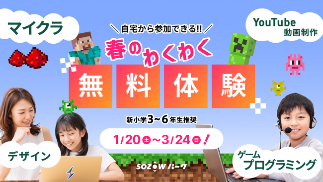 【デジタル×非認知スキル】の習いごと「SOZOWパーク」、半年に一度の入会シーズン到来 2万人以上が参加した無料体験を3月24日(日)まで毎週開催