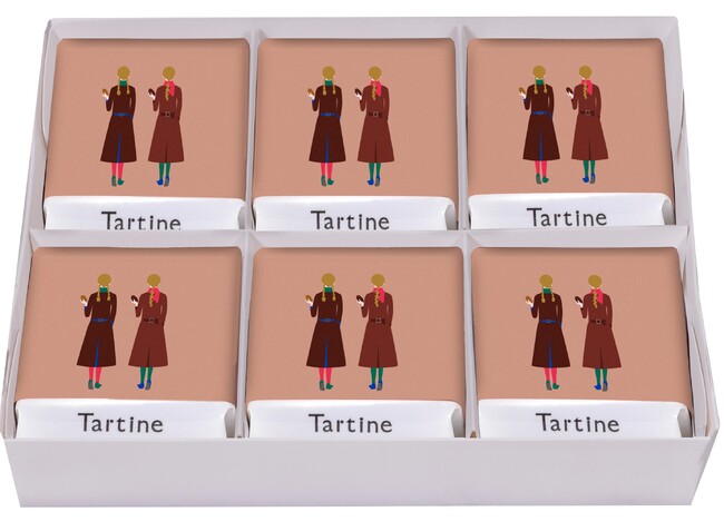 ブランドを代表するタルト菓子「タルティン」。定番のストロベリーに加えて、この時期だけのプラリネチョコもラインナップ。