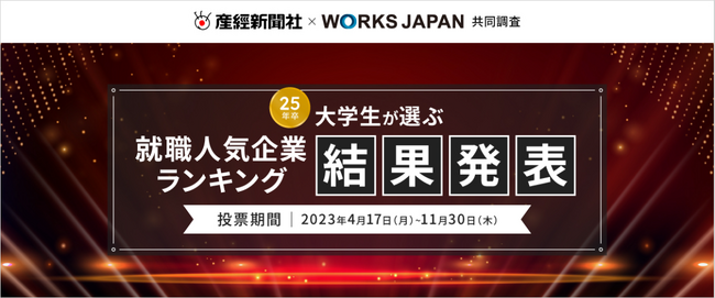 「産経新聞社×ワークス・ジャパン 25卒学生が選ぶ就職人気企業ランキング」の調査結果を発表