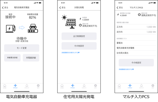 「UCHITAS」では、「重点8機器」に関する「ECHONET Lite」規格の対応製品についてリモコン操作の対応を進め、今回新たに住宅用太陽光発電、マルチ入力PCS、電気自動車充電器に対応しました。「UCHITAS」の「重点8機器」に関するリモコン操作対応状況は以下の通りです。