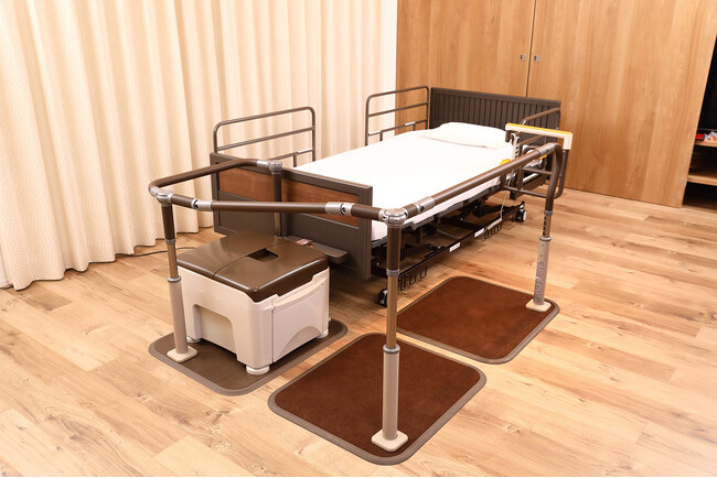 このような背景からパナソニック エイジフリーは、ポータブルトイレだけでなく、自宅内でのスムーズな移動をサポートすべく、連結式の据え置き型手すりや、安定感や小回りを重視した歩行車などの品ぞろえを強化してきました。そしてこの度、ポータブルトイレをさらに快適に使いやすくするため、介護保険利用の際に購入対象となるポータブルトイレと貸与対象となる手すりを組み合わて使用することを想定したこれまでにない新製品を開発しました。