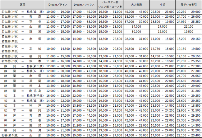 (1) 一斉発売対象運賃【Dreamフレックス/Dreamプライス/バースデー割/ユース割/シニア割】