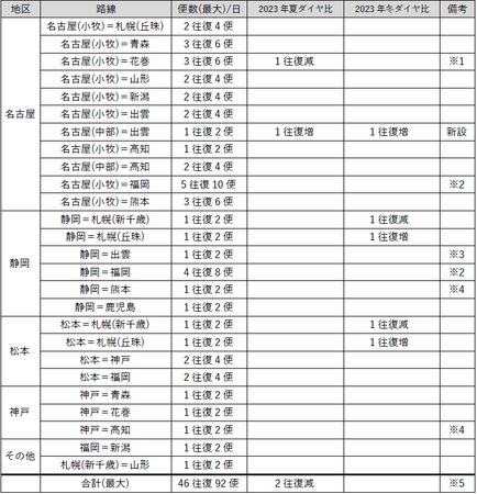 ※3 同路線は、2024年1月9日より運休しておりますが、今夏ダイヤでは運航を再開いたします