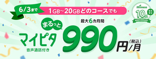 マイピタ デュアルタイプが全コース最大6カ月間990円/月