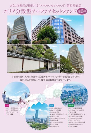 『エリア分散型アルファアセットファンド第6弾』は、穴吹興産が全国で保有する物件の中から首都圏・関西・九州に点在する優良物件24物件が対象。エリアを分散することで局地的な災害リスクなども抑えることができます。