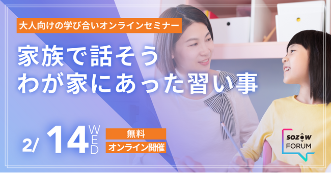 「習い事から考える子どもの可能性と家族の関わり」のオンラインセミナー【SOZOWフォーラム】を2/14(水)無料開催