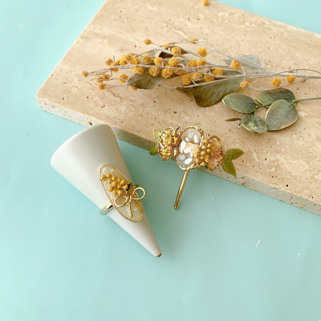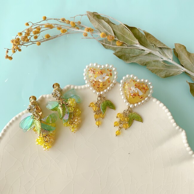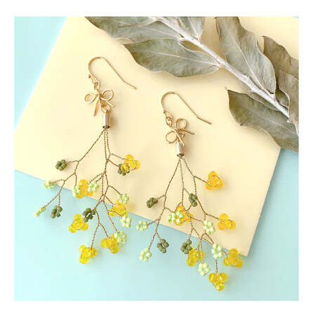 <商品名:オリジナルキット / 春のあしおと ミモザイヤリング >