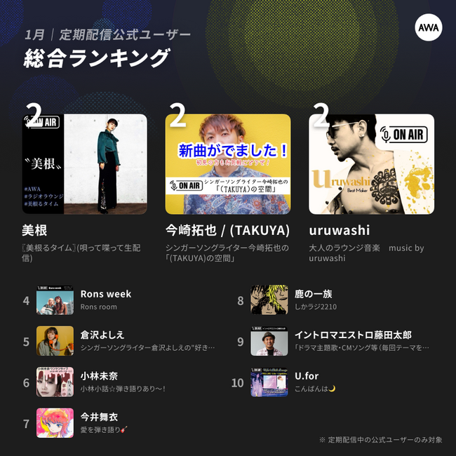■2024年1月定期配信AWAラウンジ人気ランキングTOP10