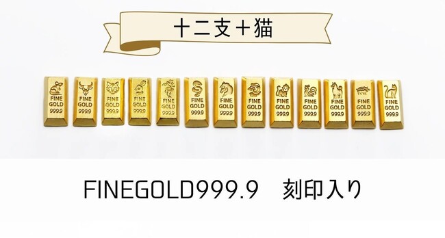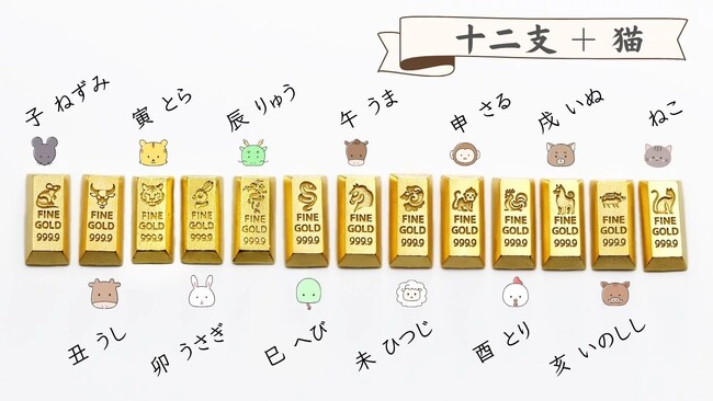 1gのかわいい純金【BABYGOLD】に今度は『干支コレクション』が加わりました。十二支に加えて、日本で大人気の動物『猫』も仲間入り!遊び心も忘れていません。