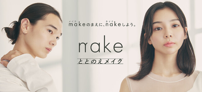 そもそも「メイク」という言葉は、「嫌いなところを隠す・修正する」マイナスから0もあれば、0からプラスに「彩る」ことまで幅広い意味で使われています。その中でも、自分をより華やかに見せる「彩る」コスメブランドは数多く存在していますが、「彩る」前のすっぴんを、より理想に近づけるようなコスメブランドを立ち上げ、「隠す・修正することで理想のすっぴんまで近づける」工程を ”ととのえメイク” とネーミング。nakedとmakeの間、「スキンケア以上、メイク未満」の存在としてすっぴんを“ととのえる”ことに特化したコスメブランド「nake」を開発しました。「ととのえメイク」で、”彩る前のすっぴん”も、”彩るメイクアップ”も、理想の状態に近づくようサポートします。