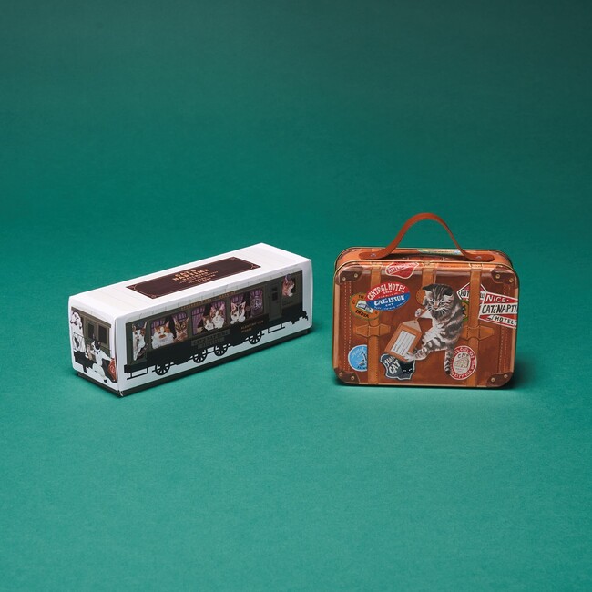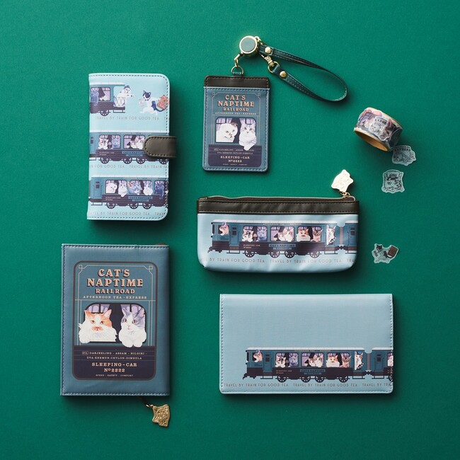 デザインには、ネコたちが架空の列車“アフタヌーンティー急行”に乗って紅茶を楽しむ様子をモチーフに、旅する時にぴったりなステーショナリーアイテムや、食堂車で使われている食器をイメージしたテーブルウエアなどがラインアップ。コラボレーション10回目を記念して、シリーズ歴代のアートを使用したスペシャルアイテムや復刻アイテムも登場いたします。