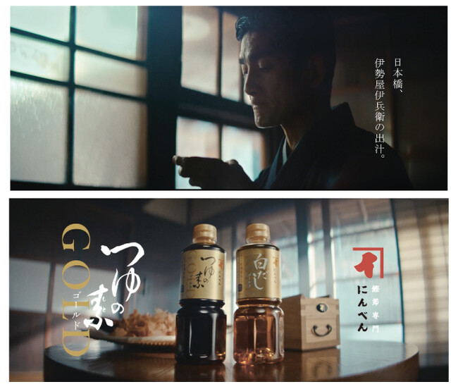 にんべん13代当主“高津伊兵衛”がCM初登場 好調の「つゆの素ゴールドシリーズ」新CM、2月8日公開