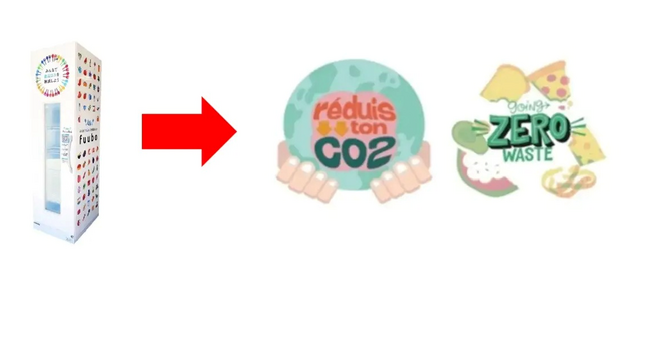 ZEROは、「地球上の貧困をゼロにする」をビジョンに掲げ、フードロスの削減を図る無人販売機「fuubo」を開発しました。フードロスやCO2排出量削減への取り組み、福利厚生の充実を図る企業と契約のうえ、オフィスなどに「fuubo」を設置、そこに食品メーカーや食品卸企業から、賞味期限が近く、通常の販売ルートでは流通できない食品、パッケージの変更などを理由に廃棄される可能性のある食品を安価に仕入れて提供、導入先からサービス料を回収するビジネスモデルです。導入した企業においては、「fuubo」の活用によって生まれるCO2排出量削減効果を可視化することで、貢献度の訴求を可能とします。現在、全国の駅、商業施設、オフィスなど、多くの場所に設置されており、一般消費者や導入企業の従業員などに利用いただいています。