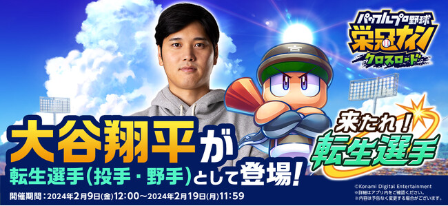株式会社コナミデジタルエンタテインメントは、モバイルゲーム『パワフルプロ野球 栄冠ナイン クロスロード』(以下、『パワプロ 栄冠クロス』)で、ゲーム内イベント「来たれ!転生選手」を本日2月9日(金)から開始したことをお知らせします。