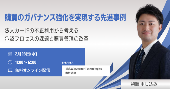 調達・購買部門向けクラウドサービス「Leaner」を提供する株式会社Leaner Technologies(本社:東京都品川区、代表取締役:大平裕介、以下「Leaner」)は、購買業務のガバナンス強化について取り組み事例を元に紹介するオンラインセミナーを開催いたします。
