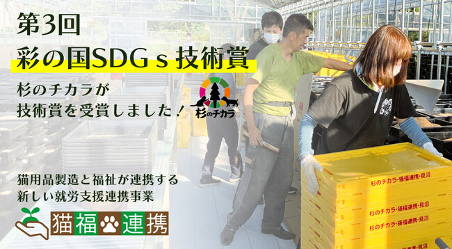 「杉のチカラで地球を元気にする」をミッションに掲げる杉のチカラ株式会社は、埼玉県が主催する彩の国SDGs技術賞を受賞した就労支援連携事業の専用サイト「猫福連携.com」を公開したことをお知らせします。