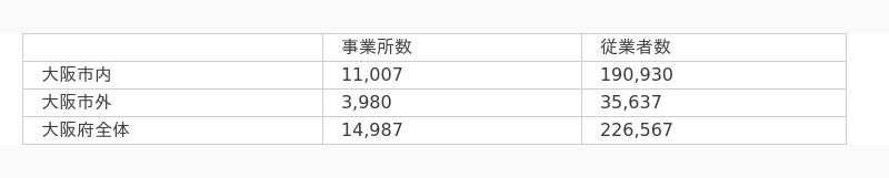 出典:総務省「令和3年経済センサス-基礎調査事業所に関する集計」より大阪市経済戦略局調べ(本統計で扱ったクリエイティブ産業は、「151 印刷業」、「39 情報サービス業」、「40 インターネット付随サービス業」、「41 映像・音声・文字情報制作業」、「726 デザイン業」、「73 広告業」、「74A 建築設計業」、「746 写真業」の合計値)