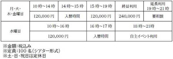 招待会員制のイベントスペース「NORIBA10 umeda(ノリバ テン ウメダ)」の概要は、次のとおりです。