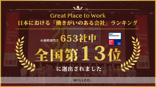 株式会社WILLCO「働きがいのある会社」ランキング 小規模部門で全国13位を受賞!