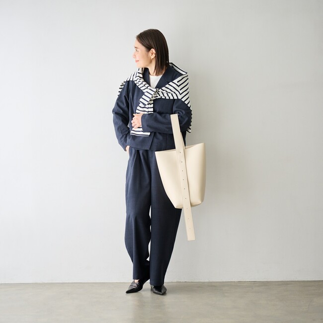 かっちりとしたスタイルにも、きれいめカジュアルにも、オンオフで使えます。