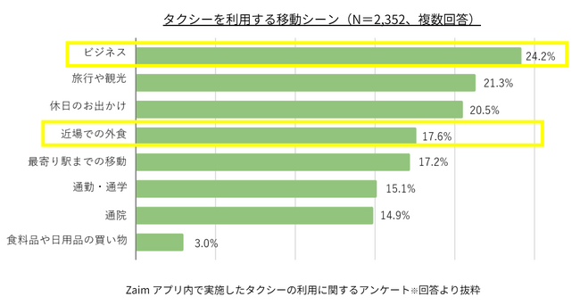 ◆ コロナ禍を経ても、タクシーの利用シーンで最も多いのは「ビジネス」