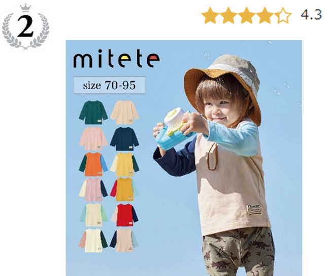 0歳入園におすすめの70cmから展開。肩ボタン開き&襟ぐりがよれにくい仕様がポイント。