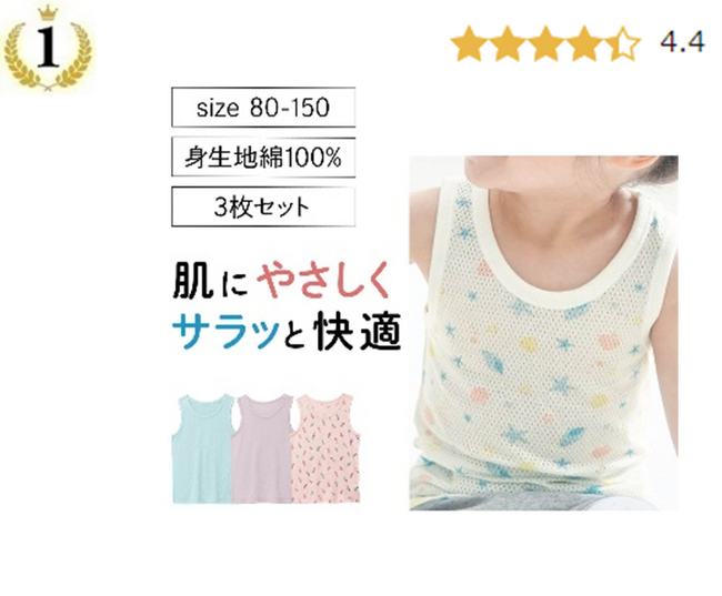 季節関係なく、子どもはよく汗をかくので、さらっと気持ちよい綿100%のメッシュ素材は、年中大活躍します。