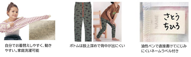 ・ 自分でお着替えしやすく、動きやすい