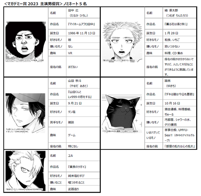 ■マンガを愛する者たちによる、マンガ文化の祭典「マガデミー賞2023」ノミネートキャラクターと作品を発表!