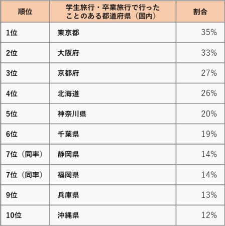 学生旅行・卒業旅行で行ったことがあるのは国内、それとも海外?