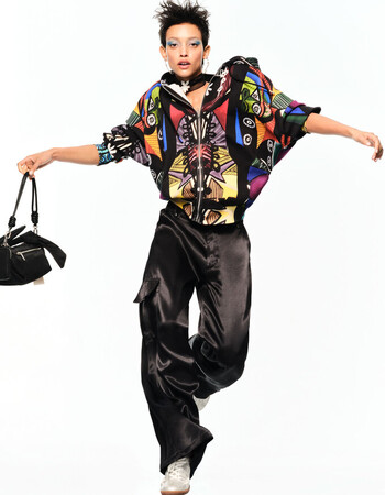アートがスタイルのインスピレーション源である本コレクションの主役は、ハイコントラストな要素、大ぶりの蘭の花、抽象的なコラージュの組み合わせです。ボンバージャケット、スウェット、ニット、カーゴパンツといったストリートスタイルを象徴するアイテムを、都会的で洗練されたスタイルにアップグレードし、シックでエレガントなスタイルにさらなる快適さを与えています。
