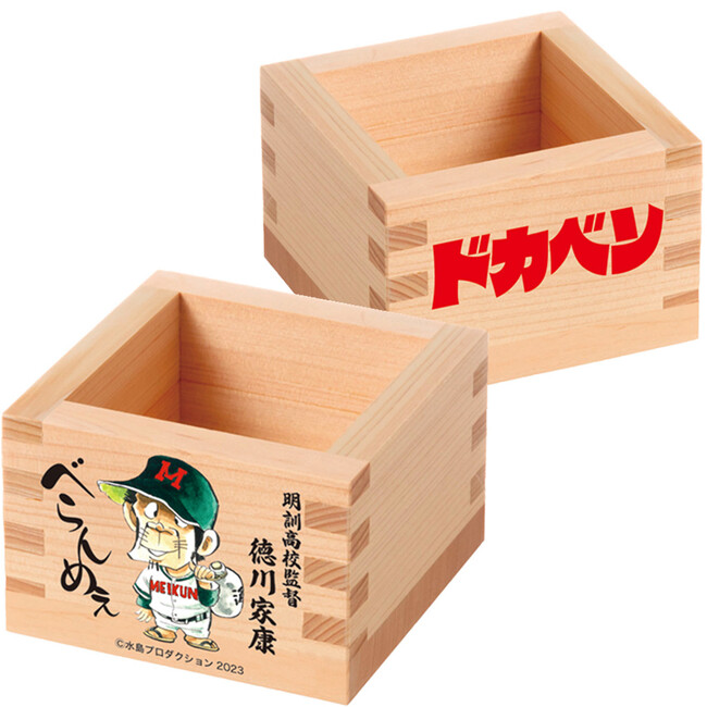 高校野球漫画なのに酒枡をリリース?!ご存知、流浪の優勝請負人・徳川家康監督モデルの一升枡がまさかの登場!枡を持参し日本酒片手にバックネット裏から中学野球を観戦すれば、あなたも徳川監督の早変わり?!飲酒をしながら酔いどれノックの真似だけはご注意ください!