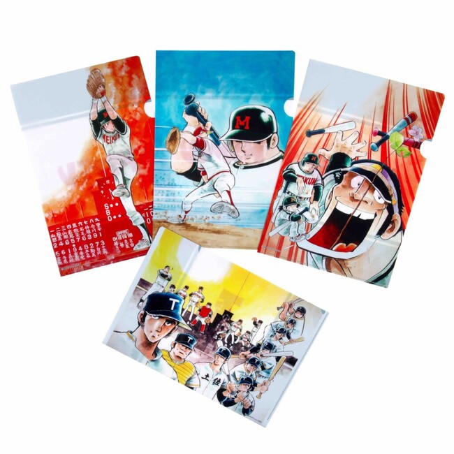 『ドカベン』カラー原稿を美麗なA4大サイズで再現したクリアファイル4枚セットが登場!イラストを見れば熱戦が思い浮かぶ「弁慶高校戦の里中」「最強のライバル、不知火vs山田」「花は桜木、男は岩鬼」「鳴門の牙・犬飼率いる土佐丸高校」の計4種!配りやすいプレゼントにも最適です。