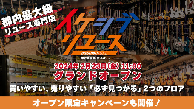 【都内最大級の楽器リユースストア】エレキギターはもちろんベース、アコギ、エフェクター全てが揃う「イケシブリユース」が2月23日(金)にグランドオープン!