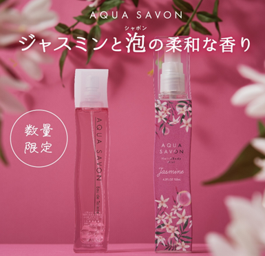 累計販売数870万本!(※1)「アクア シャボン」ブランド15周年を記念して、季節限定の香りを開発!「くつろぎジャスミンの香り」の「オードトワレ」「ヘアー&ボディミスト」を数量限定で発売いたします。