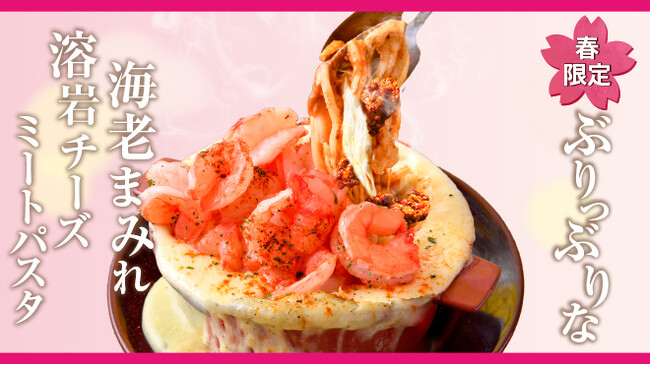 【春の溶岩パスタ】SNSで大バズリ中のあの溶岩チーズパスタに春限定メニューが新登場!『"ぶりっぶりな"海老まみれ 溶岩チーズミートパスタ』3月1日(金)開始♪