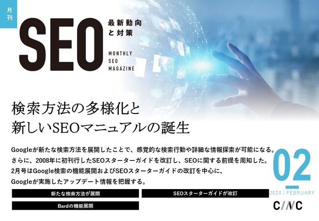 株式会社CINC(東京都港区 代表取締役社長 石松友典、以下 CINC)は、毎月特定のテーマのSEO最新動向と対策についてレポートする「月刊SEO」の2月号を公開しました。